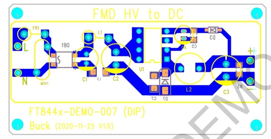 FT8443AD采用BUCK結(jié)構(gòu),并使用工字電感,極大地簡化了外圍電路設計。這種設計不僅減少了元件數(shù)量,降低了成本,還提高了電路的可靠性和穩(wěn)定性,使得PCB布局更加簡潔,調(diào)試過程也更為方便。