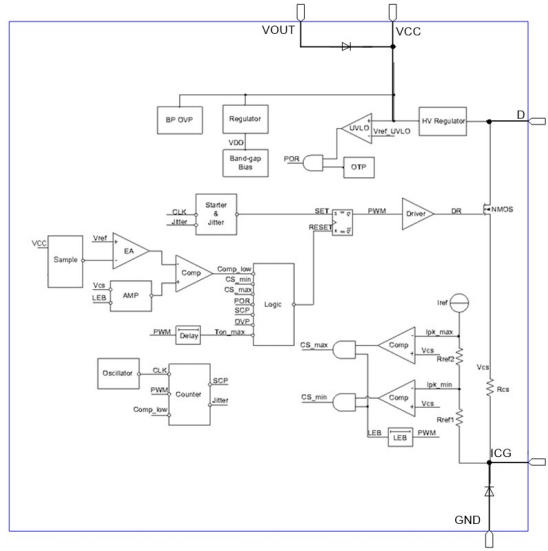 • 高壓啟動:省掉2顆啟動電阻,50ms快速起機
