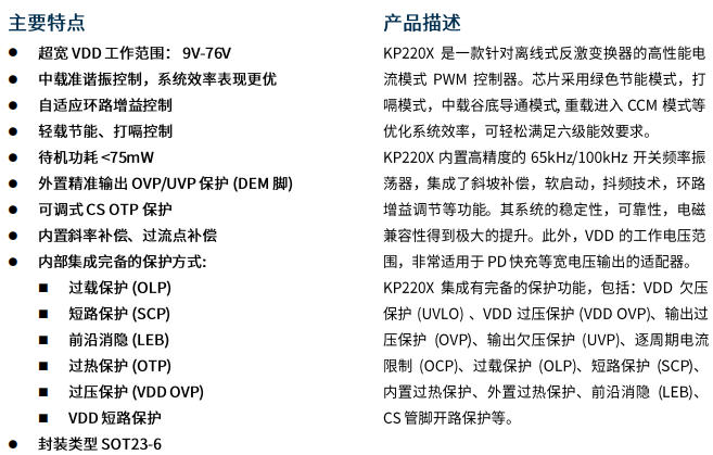 深圳三佛科技推出的 必易微KP2203LGA,把“高壓啟動、VCC 穩(wěn)壓、谷底開通、頻率折返、抖頻 EMI”全部塞進 SOP-8 5×4 mm 封裝,18-60 V 直驅(qū) MOSFET,最高 120 W 單芯片解決。看完下面拆解,你會意識到:寬電壓輸出,可以不再“堆料”。
