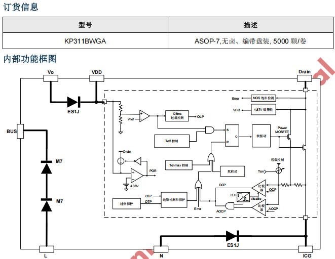 在小家電和輔助電源領域,工程師們常常面臨一個挑戰:如何在有限的空間和預算內,實現高效、穩定的電源設計。傳統方案往往需要多個分立元件,不僅增加了成本,還提高了設計的復雜性。必易推出的 KP311BWGA,以其高性能、低成本和高集成度,為這一挑戰提供了一個全新的解決方案。這款芯片將 500 V 高壓 MOSFET、續流二極管、高壓啟動電路和采樣電阻集成在一個 ASOP-7 封裝中,不僅簡化了設計,還顯著降低了系統成本和功耗。