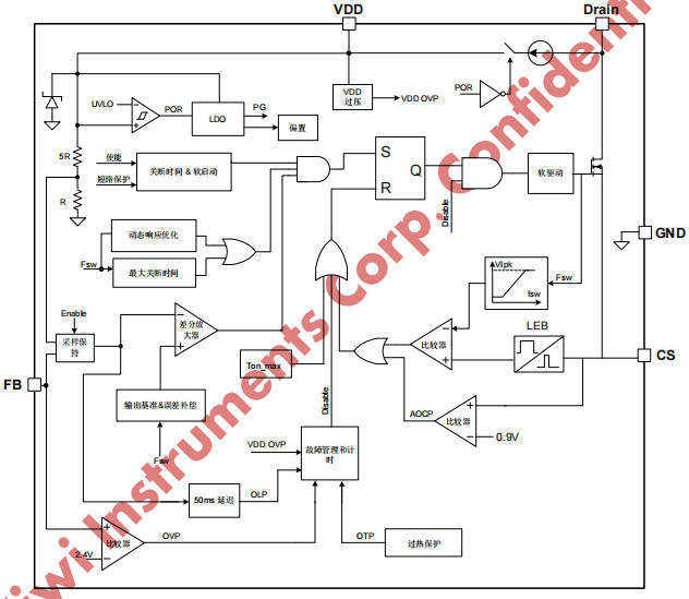 該方案支持降壓型(BUCK)與升降壓型(Buck-Boost)拓撲,適配不同輸入輸出極性需求。系統工作于準諧振模式,在輕載時自動降頻,兼顧效率與EMI性能。